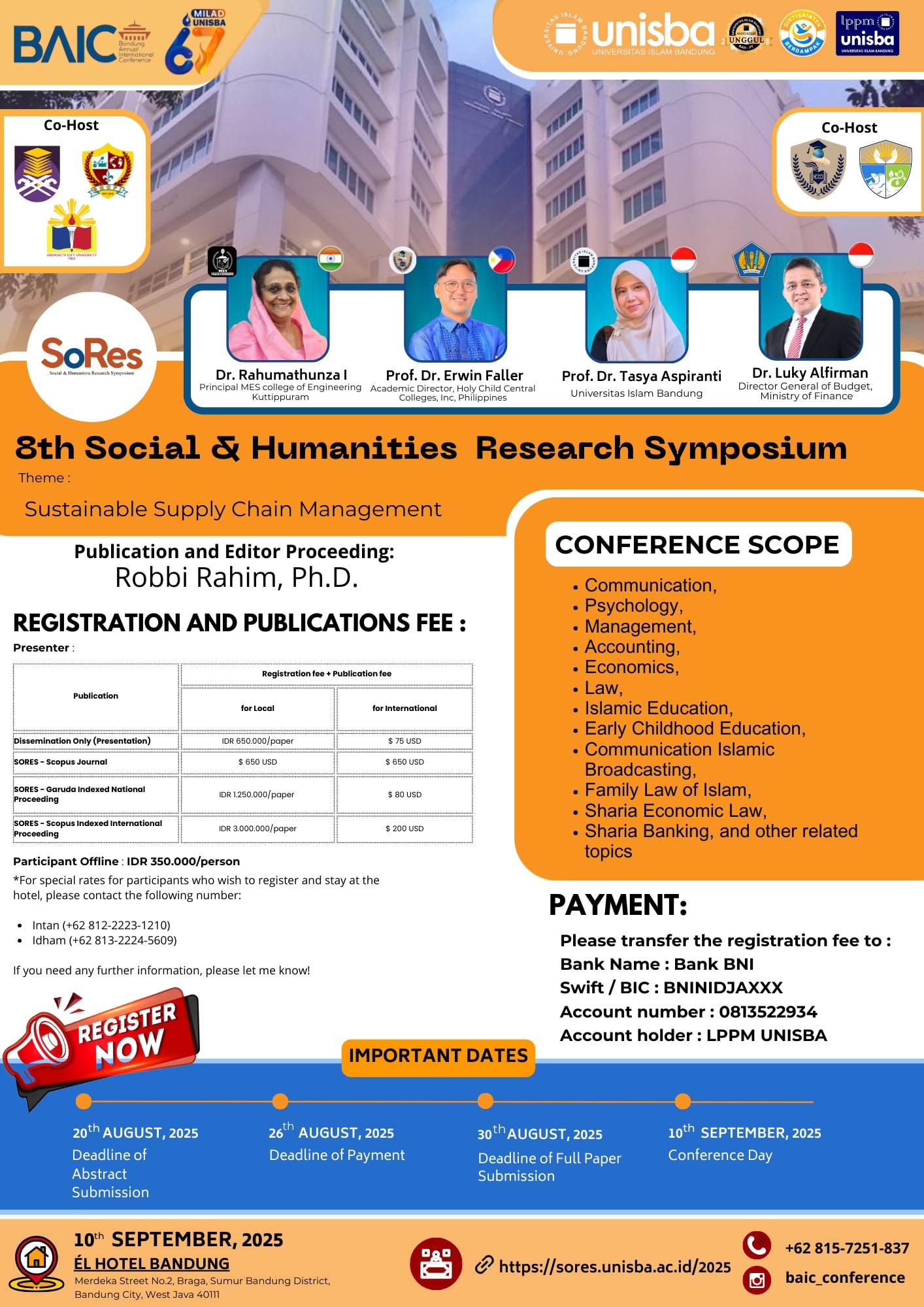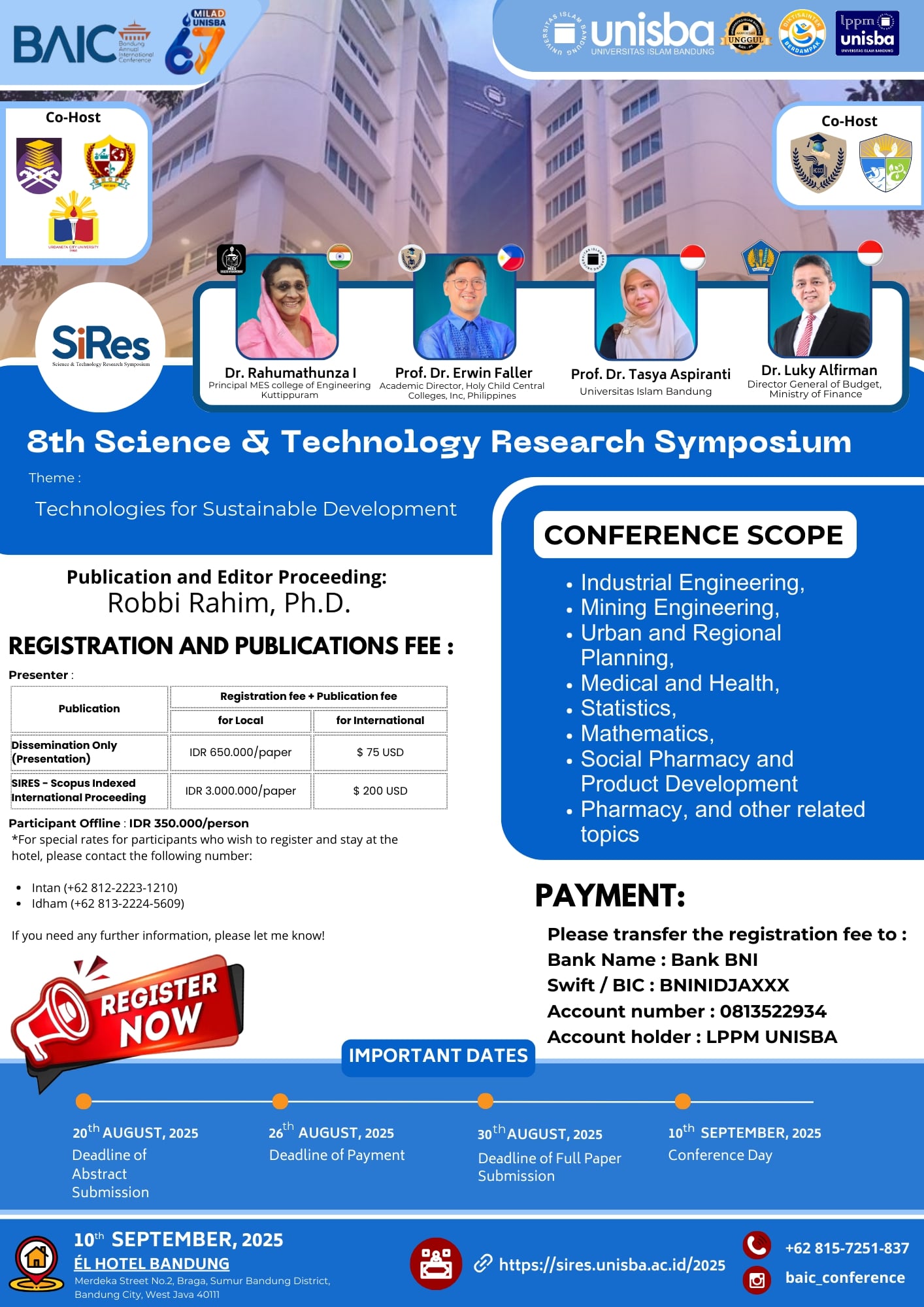 Urdaneta City University (UCU), in partnership with Universitas Islam Bandung (UNISBA), Indonesia, cordially invites you to participate in the 8th Science & Technology Research Symposium and 8th Social & Humanities Research Symposium.