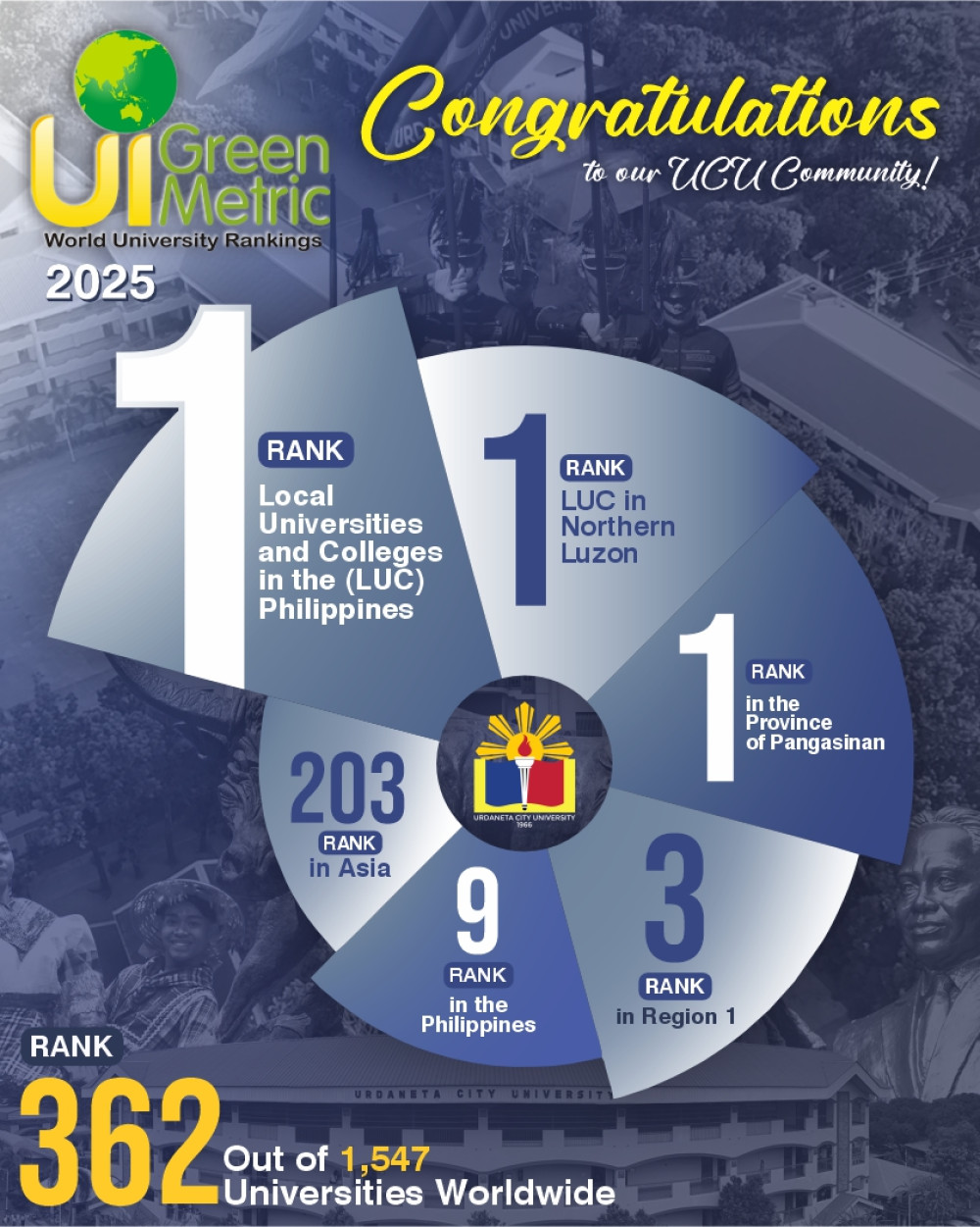 We are thrilled to announce that Urdaneta City University has yet again successfully secured spots, for two consecutive years now, in the UI GreenMetric World University Rankings 2025!